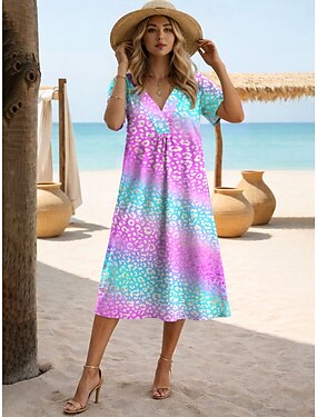Femmes Robe Midi Robe fourreau Robe d'été Vacances Occasionnel Quotidien Coupe régulière Fleuri Graphique Demi Manches Col ras du cou Bleu Violet Orange Vert Été Printemps
