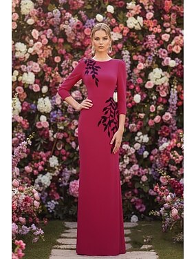 Fourreau Colonne Longueur au sol Robe d'invité de mariage Robe de Cérémonie Robe de soirée Robe de Mère de Mariée Manche 3/4 Col ras du cou Élégant Formel Tissu Extensible Crêpe Extensible avec