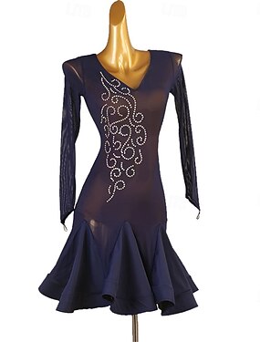 Robes de danse latine à manches longues pour femmes, robes de spectacle pour rumba