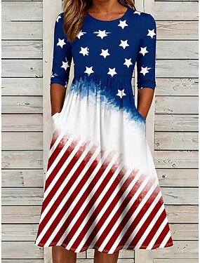 Femmes Robe Midi Robe trapèze Robe d'été Vacances Occasionnel Quotidien Fête Coupe Ample Graphique Géométrique Rayé Demi Manches Col ras du cou Bleu Gris Été