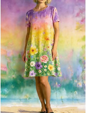 Femmes Mini Robe Robe Décontractée Occasionnel Quotidien Coupe régulière Fleuri Manche Courte Col ras du cou Bleu Violet Vert Été
