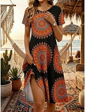 Femmes Robe Midi Robe trapèze Occasionnel Plage Coupe régulière Fleuri Graphique Manche Courte Col ras du cou Jaune Rose Claire Vert Été Printemps
