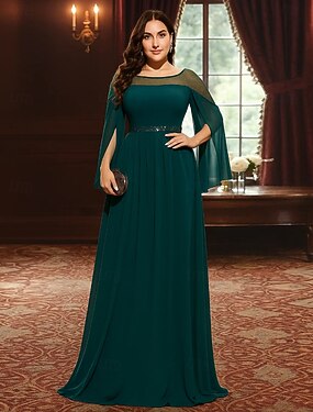 Ligne A Longueur au sol Robe de Cérémonie Robe de soirée Robe cape Robes pour invités de mariage Élégant Quotidien manche longue Col haut Formel Dos Bénitier avec Fleurs 3D Plis Fleur d'Épaule