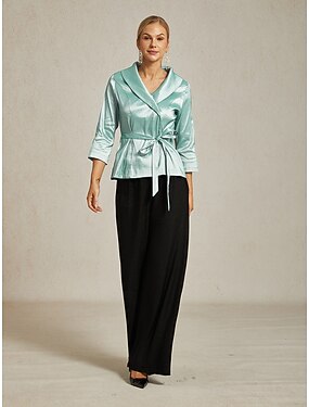 Femmes Chemisier Hauts de soirée Nœud devant Couleur Unie Uni Élégant Métallique Moderne Manche 3/4 Col en V Hauts Réguliers Soirée robe demoiselle d honneur Semi-Formel Noir Printemps, Automne
