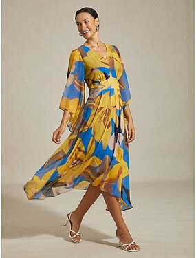 Robe longue en mousseline de soie pour femme, imprimé floral abstrait, transparente, fluide, décontractée, destination, mariage, invité, vacances, voyage, station balnéaire, printemps, été, automne