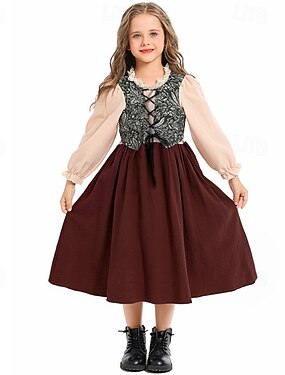250e anniversaire des États-Unis 19ème siècle années 1800 Robe Prairie Manches longues Fille pionnière Epoque Coloniale Pionnier Guerre d'indépendance américaine Déguisement Fille Halloween Carnaval