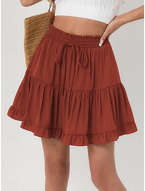 Femmes Élégant Mode Occasionnel Mini Taille Basse Jupes Uni Froncé Micro-Élastique Quotidien Rue Noir Champagne Marron Vert Été Polyester