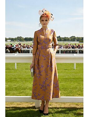 Ligne A Longueur cheville Longueur thé Robe de Derby Robes de Cocktail Élégant Quotidien Manche 3/4 Col en V Kentucky Derby Jacquard avec Poche