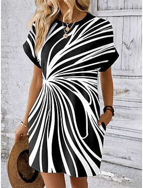 Femmes Robe Ensemble Robe trapèze Vacances Occasionnel Graphique Rayure Superposé Imprimé Mini Robe Demi Manches Col ras du cou Quotidien Bleu Noir Beige Été Printemps Coupe Ample