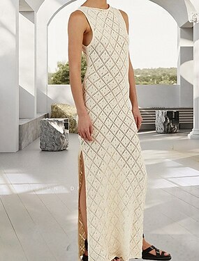 Femmes Robe Longue Maxi Robe Robe maxi Robe bohème Robe en Dentelle Robe Blanche Robes Bohème Chic Bohème Plage Vacances Mariage Coupe régulière Sans manches Col en V Blanche Abricot Été