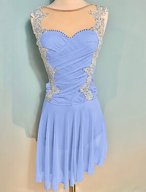 Robe de patinage artistique Femmes Fille Patinage Robe Bleu Ourlet asymétrique Maille Haute Élasticité Entraînement Compétition Tenue de Patinage Classique cristal pailleté Sans manches Patinage sur