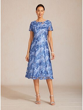 Femmes Robe Midi Robe trapèze Élégant Quotidien robe demoiselle d honneur Paillettes Broderie Coupe régulière Fleuri Manche Courte Col ras du cou Wedgewood