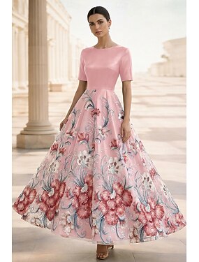 Ligne A Longueur au sol Longueur cheville Robe de Soirée Tenue de soirée Élégant ancien Manche Courte Une Épaule Mariage Formel Poche Nylon avec Imprimé floral