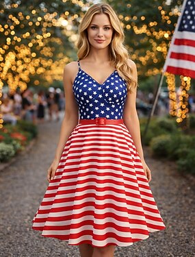 250e anniversaire des États-Unis Midi Robe Sans manches Dos nu Drapeau des États-Unis Col en V Déguisement Femmes 250e anniversaire des États-Unis 4 Juillet Soirée Adulte Robe Été