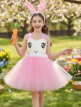 Tutu Robe Princesse Animal lapin de Pâques Robes Drôle Enfant Fille Carnaval Pâques Carnaval Soirée Se déguiser