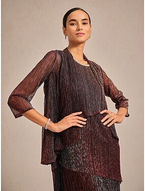 Robe Silhouette Colonne Longueur de Sol Robes Prom Robe de Soirée Robe de Bal Robe Formelle Élégante Manches Mi-Longues Col Bijou Invité de Mariage Formelle Soirée Automne Réception de Mariage avec