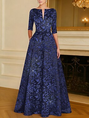 Ligne A Longueur au sol Broderie perlée Robe de Cérémonie Robe de la mère de la mariée Robe de Soirée Tenue de soirée Élégant Éclat Demi Manches Col Bateau Mariage Formel Pailleté avec Paillettes