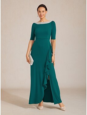 Robe formelle longueur sol Fourreau Colonne Robe de soirée Robe de soirée Élégante À manches mi-longues Col rond Formelle avec cristaux et perles