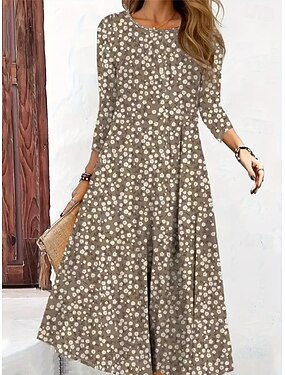 Femmes Robe maxi Robe trapèze Occasionnel Quotidien Date Sortir Coupe Ample Fleuri Graphique Manche 3/4 Col ras du cou Bleu Rouge Violet Vert Été Printemps