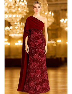 Fourreau Colonne Longueur au sol Broderie perlée Robe de Cérémonie Robe de la mère de la mariée Robe de Soirée Tenue de soirée Élégant Robe Noire Soyeux Sans manches Une Épaule Mariage Formel Capes