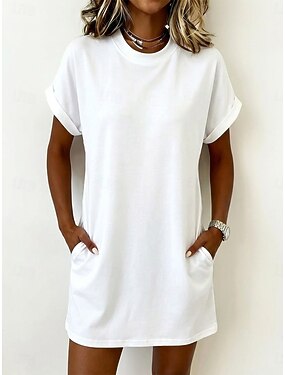 Femmes Mini robe Robe T-Shirt Basique Classique Quotidien Week-end Coupe Ample Uni Manche Courte Col ras du cou Noir Blanche Rose Claire Vert Véronèse Été Printemps