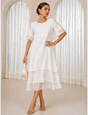Femmes Robe Midi Faux coton lin Robe fourreau Robe Blanche Robe Décontractée Basique Occasionnel Quotidien Extérieur Coupe Ample Uni Manche Courte Col ras du cou Blanche Violet Été Printemps