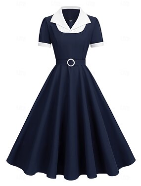 Rockabilly Midi Robe trapèze Manches courtes Ajusté & Évasé Déguisement Femmes Carnaval Saint-Valentin Occasionnel Retour à la maison Soirée à thème rétro Adulte Robe Printemps