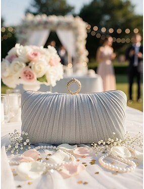 Pochette de soirée élégante pour femme avec poignée supérieure et chaîne, en polyester brillant, disponible en plusieurs couleurs, ornée de détails scintillants, idéale pour les mariages, les fêtes et