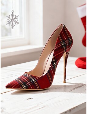 Escarpins à talons aiguilles à carreaux pour femmes, escarpins classiques à bout pointu en tartan pour les fêtes de Noël, tenues de vacances &fêtes d'hiver