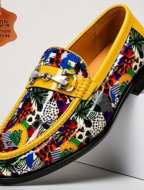 Mocassins en cuir à motifs colorés pour hommes, chaussures habillées élégantes et décontractées, idéales pour les fêtes, les séjours en plein air et les voyages.