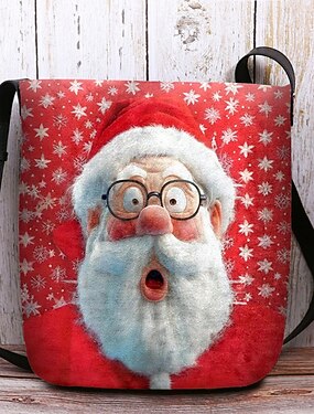 Sac bandoulière de Noël pour femme - en velours de polyester, motif Père Noël et chat, sac à main festif, idéal pour les sorties hivernales et les fêtes de Noël