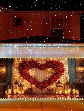 Décoration de porte de garage pour la Saint-Valentin, bouquet de roses illuminé de guirlandes lumineuses, petits arbres décoratifs, idéale pour une ambiance festive, parfaite pour la maison, une