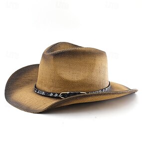 Homme Chapeau de Soleil Chapeau de Cowboy Bisque Rose Claire Corde de paille Le style rétro Mode 18ème Siècle Quotidien Le thème de la fête Couleur Unie / Unie Écran solaire Cosplay
