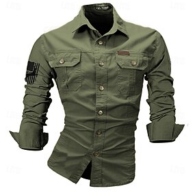 Homme Chemise Chemise Décontractée Chemise Cargo Noir Kaki Gris Bleu clair manche longue Uni Col de chemise Occasionnel Quotidien Boutons Vêtement Tenue Vacances Mode Occasionnel