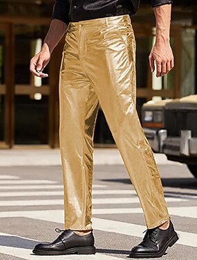 Homme Pantalons Dress Pants works Pantalon en satin Pantalon Disco Pantalon de bal Avec Poches Uni Respirant Longueur complète Mariage Soirée Scène Mode Streetwear Noir Blanche Élastique