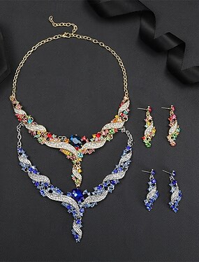 Parure de bijoux 2 Cristal Alliage Boucles d'oreilles Collier Femmes Élégant ancien Mode Le style rétro Classique Parure de Bijoux Pour Mariage Soirée robe demoiselle d honneur