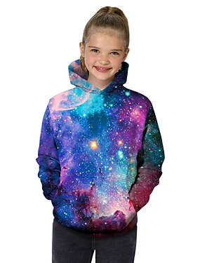 Fille 3D Galaxie Géométrique Bloc de couleur Sweat à capuche manche longue 3D effet Printemps Automne Hiver Actif basique Enfants Bébé 2-12 ans Extérieur du quotidien