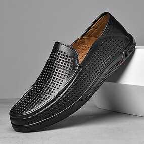 Mocassins pour hommes en similicuir noir perforé – chaussures légères et respirantes pour les occasions décontractées et professionnelles décontractées