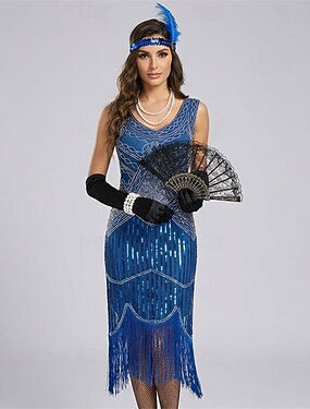 Années Folles Années 1920 Mi-long Robe Robe Charleston Robe de Bal Normal Sans manches Gatsby le Magnifique Charleston Invité au mariage Paillettes Frange à pompons Col en V Déguisement Femmes