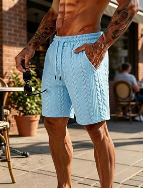 Homme Shorts Short décontracté Jacquard Texturé Uni Confort Respirant Longueur Genou Occasionnel Extérieur Plage Vacances Mode Noir Vin Micro-Élastique