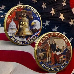 Pièce commémorative du 250e anniversaire des États-Unis, pièce de défi patriotique, cloche de la liberté &Modèle de la Déclaration d'indépendance, 1776-2026, objet de collection en métal durable pour