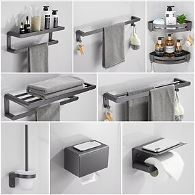Ensemble d'accessoires de salle de bain, quincaillerie de salle de bain espace aluminium mural pistolet gris porte-serviettes/étagère d'angle/crochet pour peignoir/porte-papier