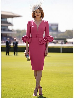 Fourreau Colonne Longueur thé Robe de Soirée Robe de Cocktail Robe d'invité de mariage Robe de Mère de Mariée Demi Manches Col en V Élégant Cocktail robe demoiselle d honneur Fête de fiançailles avec