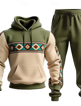 Homme Tribal 2 pièces Ensembles de sweat-shirts 3D Survêtement Sweat à Capuche manche longue Pantalon long À capuche Style Ethnique Décontracté Quotidien Athleisure Impression 3D Printemps Automne