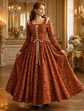 Médiéval Renaissance Longueur au sol Robe Manches longues Prince Reine Ligne A Déguisement Femmes Royal Halloween Carnaval Mascarade Foire de la Renaissance LARP Adulte Robe Toutes saisons