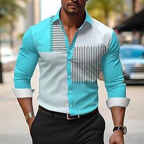 Homme Chemise Chemises imprimées marinière Extérieur Travail Gris+Violet Gris métallisé Jaune Rouge manche longue Col rabattu Printemps été Vêtement Tenue Imprimer