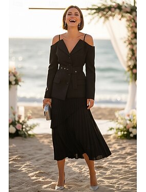 Femmes Robe blazer Deux Pièces Ligne A Cocktail Bureau Travail Élégant manche longue Longueur au sol Longueur cheville Cranté Col Rabattu Double Boutonnage
