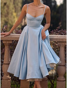 Ligne A Mi-long Robe de Cocktail Robe d'invité de mariage Robe de Derby Robe de Mère de Mariée  Sans manches Bretelles spaghetti Élégant Minimaliste robe demoiselle d honneur Cocktail Kentucky Derby