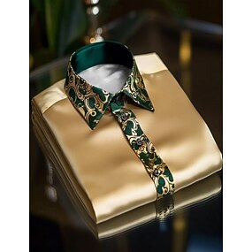 Homme Chemise Chemise en satin Chemise habillée Chemise Décontractée Chemise Boutonnée Chemise de Bal Uni Formel Mariage Noir Bleu Roi Dorée manche longue Revers Printemps & Automne Toutes saisons