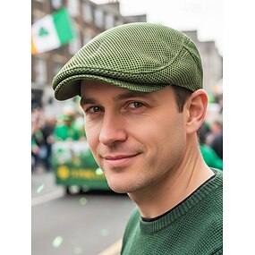 Casquette homme en polyester vert, disponible en plusieurs couleurs, idéale pour la Saint-Patrick et au quotidien.